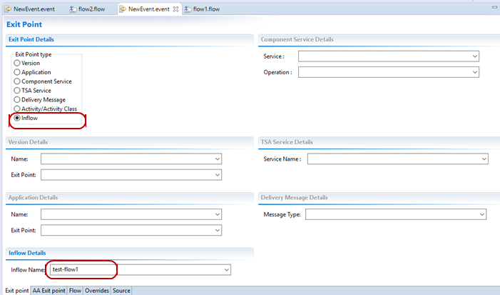 When you define an Integration Framework event, a new exit point of the type inflow is introduced and this type of exit point is for the inflows that are defined based on process workflows. For the inflow that is based on direct application or version without using PW process definition, the application or version exit point can be used.