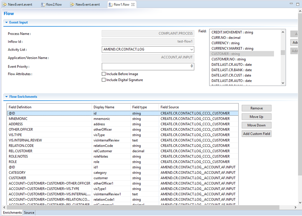 For more details about defining flows, see the Event Designer User guide. Currently custom fields are not supported.