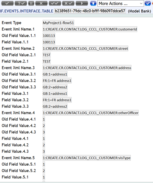 <?xml version="1.0" encoding="UTF-8"?> <tns:flow51 xmlns:tns="http://www.temenos.com/T24/event/MyProject1/flow51" xmlns:xsi="http://www.w3.org/2001/XMLSchema-instance" xsi:schemaLocation="http://www.temenos.com/T24/event/MyProject1/flow51 MyProject1-flow51.xsd" xmlns:ns0="http://www.temenos.com/T24/event/Common/EventCommon"> <tns:eventCommonDetails> <tns:eventCommon> <ns0:application>test-flow1</ns0:application> <ns0:companyId>GB0010001</ns0:companyId> <ns0:operator>AUTHORISER</ns0:operator> <ns0:today>2017-04-17</ns0:today> <ns0:transactionStage>INFLOW.PROCESS</ns0:transactionStage> <ns0:eventId>b70ed813-92f0-4fc6-8672-3601ca68bd0a</ns0:eventId> <ns0:creationTime>2018-08-11T16:31:48.841Z</ns0:creationTime> <ns0:customCommon name="InflowName">test-flow1</ns0:customCommon> <ns0:customCommon name="ProcessDefinitionName">COMPLAINT.PROCESS</ns0:customCommon> <ns0:customCommon name="InflowUniqueRef">INF123456</ns0:customCommon> <ns0:customCommon name="PWProcessID">PW1234567</ns0:customCommon> </tns:eventCommon> </tns:eventCommonDetails> <tns:createcrcontactlog_cccl_customerDetails> <tns:customerId>100113</tns:customerId> <tns:street>TEST</tns:street> <tns:addressList> <tns:address language="GB" index="1">address1</tns:address> <tns:address language="FR" index="1">FR address1</tns:address> <tns:address language="GB" index="2">address2</tns:address> </tns:addressList> <tns:otherOfficerList> <tns:otherOfficer index="1">1</tns:otherOfficer> <tns:otherOfficer index="2">2</tns:otherOfficer> <tns:otherOfficer index="3">3</tns:otherOfficer> </tns:otherOfficerList> <tns:visTypeGroup index="1"> <tns:visType>1</tns:visType> <tns:visInternalReviewList> <tns:visInternalReview index="1">1</tns:visInternalReview> </tns:visInternalReviewList> </tns:visTypeGroup> <tns:visTypeGroup index="2"> <tns:visType>2</tns:visType> <tns:visInternalReviewList> <tns:visInternalReview index="1">2</tns:visInternalReview> </tns:visInternalReviewList> </tns:visTypeGroup> <tns:relationCodeGroup index="1"> <tns:relationCode>1</tns:relationCode> <tns:relCustomer>100112</tns:relCustomer> <tns:roleSubGroup index="1"> <tns:role>10</tns:role> <tns:roleNotes>FWEFWE</tns:roleNotes> </tns:roleSubGroup> <tns:roleSubGroup index="2"> <tns:role>20</tns:role> <tns:roleNotes>DFDSFSD</tns:roleNotes> </tns:roleSubGroup> </tns:relationCodeGroup> <tns:relationCodeGroup index="2"> <tns:relationCode>2</tns:relationCode> <tns:relCustomer>100115</tns:relCustomer> <tns:roleSubGroup index="1"> <tns:role>20</tns:role> <tns:roleNotes>CDDDCD</tns:roleNotes> </tns:roleSubGroup> </tns:relationCodeGroup> </tns:createcrcontactlog_cccl_customerDetails> <tns:createcrcontactlog_cccl_customerDetails> <tns:customerId>100112</tns:customerId> <tns:street>TEST1</tns:street> <tns:addressList> <tns:address language="GB" index="1">address1</tns:address> <tns:address language="FR" index="1">FR address1</tns:address> <tns:address language="GB" index="2">address2</tns:address> </tns:addressList> <tns:relationCodeGroup index="1"> <tns:relationCode>1</tns:relationCode> <tns:relCustomer>100112</tns:relCustomer> <tns:roleSubGroup index="1"> <tns:role>10</tns:role> <tns:roleNotes>FWEFWE</tns:roleNotes> </tns:roleSubGroup> <tns:roleSubGroup index="2"> <tns:role>20</tns:role> <tns:roleNotes>DFDSFSD</tns:roleNotes> </tns:roleSubGroup> </tns:relationCodeGroup> <tns:relationCodeGroup index="2"> <tns:relationCode>2</tns:relationCode> <tns:relCustomer>100115</tns:relCustomer> <tns:roleSubGroup index="1"> <tns:role>20</tns:role> <tns:roleNotes>CDDDCD</tns:roleNotes> </tns:roleSubGroup> </tns:relationCodeGroup> </tns:createcrcontactlog_cccl_customerDetails> <tns:amendcrcontactlog_accountafinputDetails> <tns:accountID>11001</tns:accountID> <tns:category>Td Waterhouse Uk</tns:category> <tns:customer>100113</tns:customer> <tns:otherOfficerList> <tns:otherOfficer index="1">1</tns:otherOfficer> <tns:otherOfficer index="2">2</tns:otherOfficer> <tns:otherOfficer index="3">3</tns:otherOfficer> </tns:otherOfficerList> <tns:relationCodeGroup index="1"> <tns:relationCode>1</tns:relationCode> <tns:relCustomer>100112</tns:relCustomer> <tns:roleSubGroup index="1"> <tns:role>10</tns:role> <tns:roleNotes>TEST1</tns:roleNotes> </tns:roleSubGroup> <tns:roleSubGroup index="2"> <tns:role>20</tns:role> <tns:roleNotes>RTWRERWE</tns:roleNotes> </tns:roleSubGroup> </tns:relationCodeGroup> <tns:relationCodeGroup index="2"> <tns:relationCode>2</tns:relationCode> <tns:relCustomer>100115</tns:relCustomer> <tns:roleSubGroup index="1"> <tns:role>30</tns:role> <tns:roleNotes>EWTEWREW</tns:roleNotes> </tns:roleSubGroup> </tns:relationCodeGroup> </tns:amendcrcontactlog_accountafinputDetails> </tns:flow51>