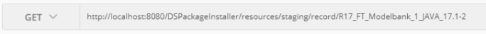 curl --request PUT \ --url http://localhost:8080/DSPackageInstaller/resources/staging \ --header 'authorization: Basic dGFmajp0YWZqITIwMTY=' \ --header 'cache-control: no-cache' \ --header 'content-type: application/x-www-form-urlencoded' \ --header 'postman-token: 6a092c9d-334a-2a27-0a8e-3629b68ee796' \ --data packageName=R17_FT_Modelbank_1_JAVA_17.1
