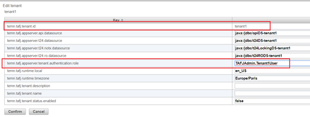 In this case, the tafj user is assigned the TAFJAdmin role. This specifies that the tafj user can access all tenants, all configuration and management operations as demonstrated above, including the master logs and change log level configuration.