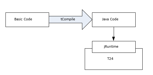 When a tCompile command is executed, the BASIC file is analysed to define the grammar level and then the Java file is generated in memory.