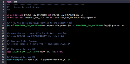 Payment order SQL microservice is configured to support NuoDB in its docker implementation. To verify the same, you need to extract the generated zip package in ms-payments-package-docker module and modify the paymentorder.bat file to use NuoDB as the database and execute it.