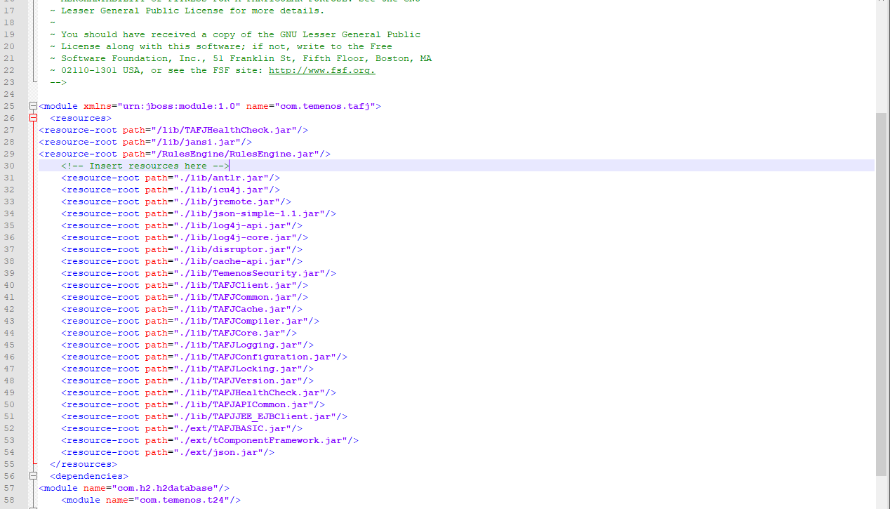 module.xml available in the C:\Temenos\jboss\modules\com\temenos\tafj\main path (This path may vary in your system).