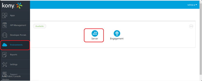 - Under the Environment to which the app was published click Server. The Admin Console page opens.
