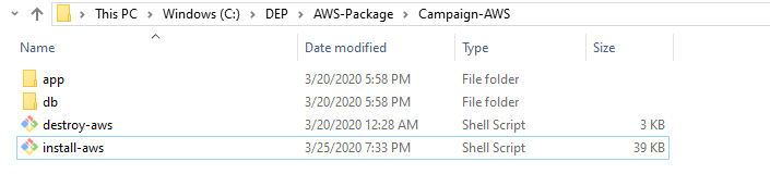 - The install-aws.sh script is used to deploy the Campaign Microservices in the AWS environment.
