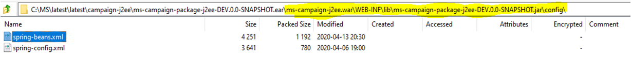 - Update the entries in the spring-beans.xml file as shown below.