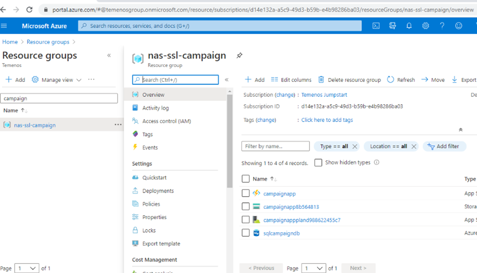 - Log in to Azure portal and check if the following have been created.