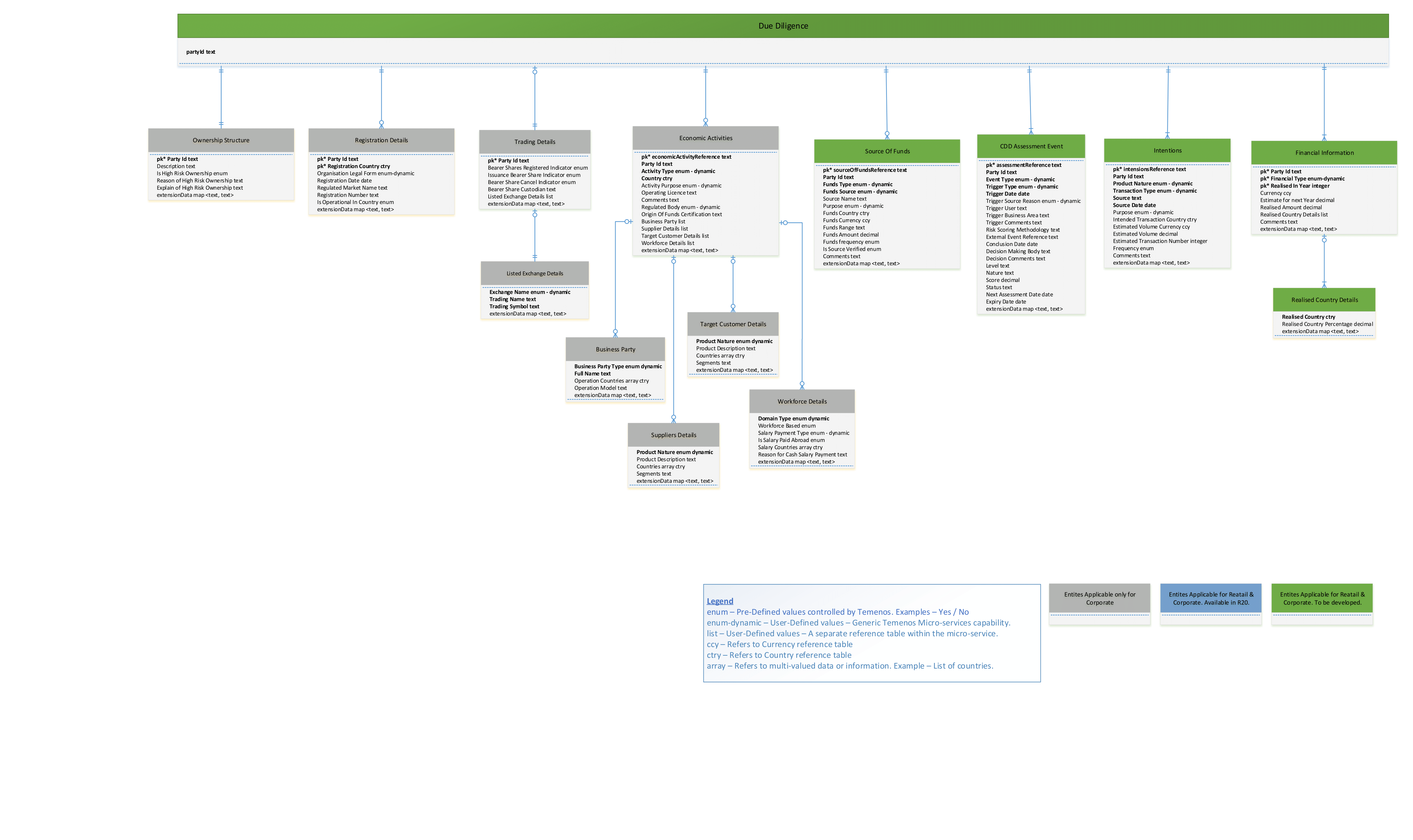 To view the NoSQL data model of Due Diligence microservice and different entities associated with it, click here.