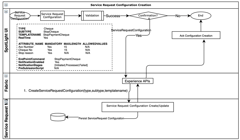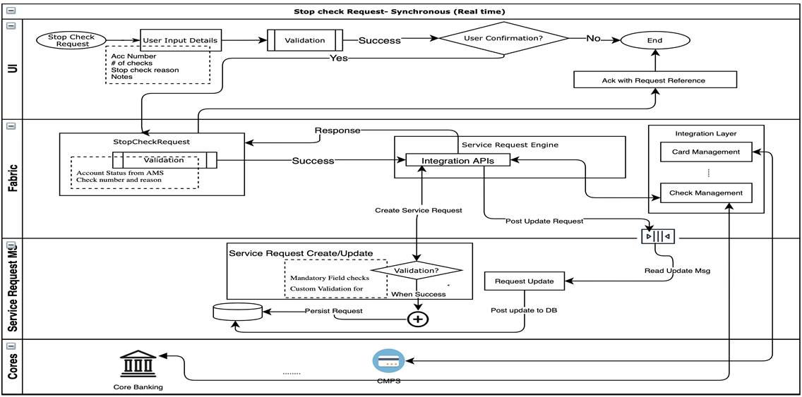 - To serve different types of service requests such as New Cheque Book, Change of Address or Contact Number, Bank Statement, and Interest Certificate, the Service Request microservice provides an abstraction from the core in Infinity.