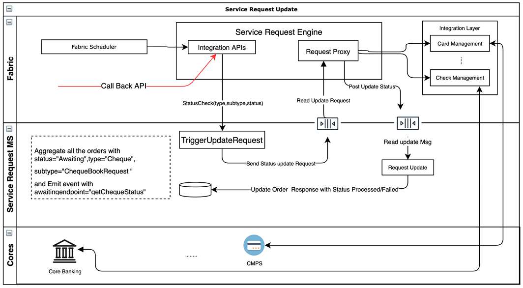 Banks may require different systems to process different types of service requests. The Service Request microservice integrates with multiple systems for processing.