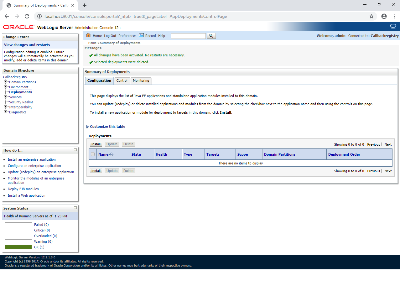 - Create a domain in oracle server by following the steps in the oracle documents.