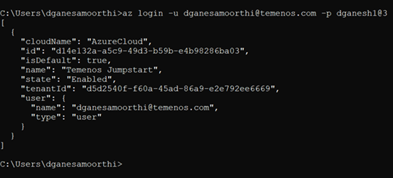 C:\>az login -u dganesamoorthi@temenos.com -p XXXXX
