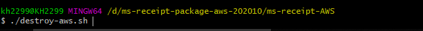 - To execute install-aws.sh shell file, use command ./install-aws.sh. This command will create services in the AWS environment by the AWS CLI commands written in the install shell file.