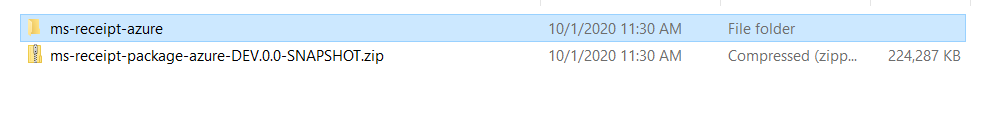 The Receipt microservice for Azure deployment is available as a single release bundle. For example, ms-receipt-package-azure-<release.xxx>.zip.