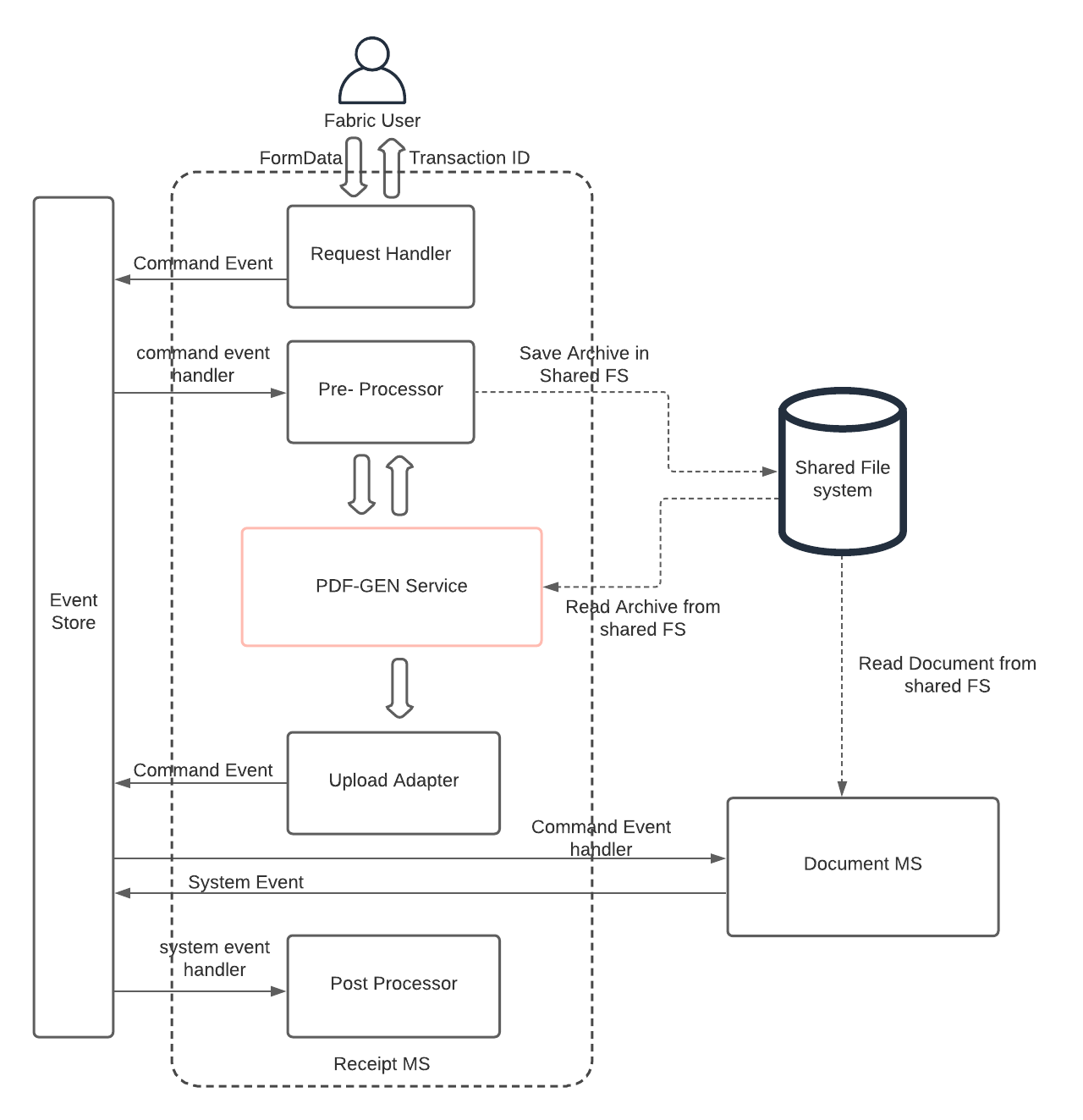 - Onboarding applications which needs to generate the receipt as a PDF record of the data entered during the customer journey. Once generated the receipt will be stored in the Document Microservice.