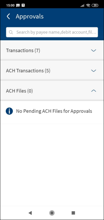 View the list of ACH files uploaded by you and needs approval to complete the process. If there are no pending ACH files that require approval, then the application displays an appropriate message.