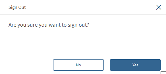 - Sign Out. Click to sign out of the application. The app displays a message prompting you to confirm, and on confirmation, displays a screen to log on again. The user name is retained but masked if you you had selected the Remember Me check box during the earlier login.