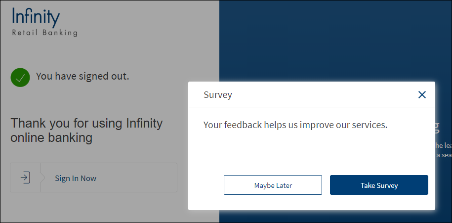 - Feedback. Click to send a feedback for the banking experience.