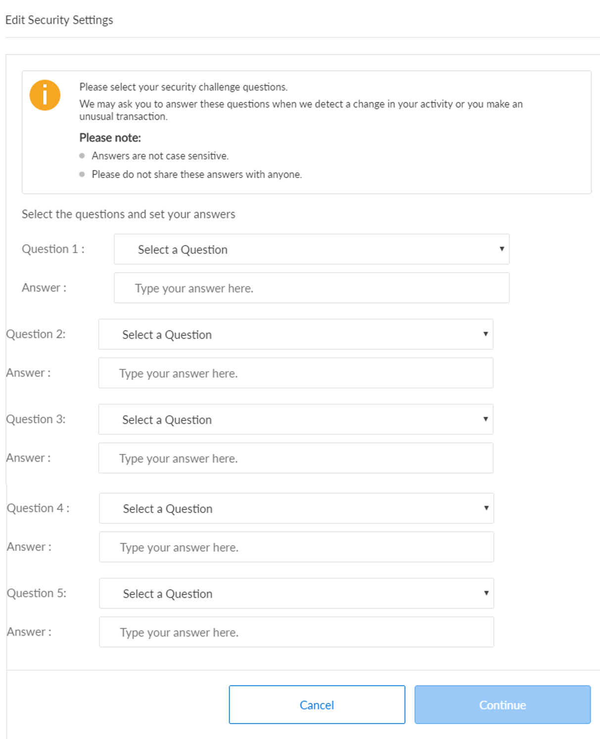 Use the feature to set up or reset your security challenge questions.