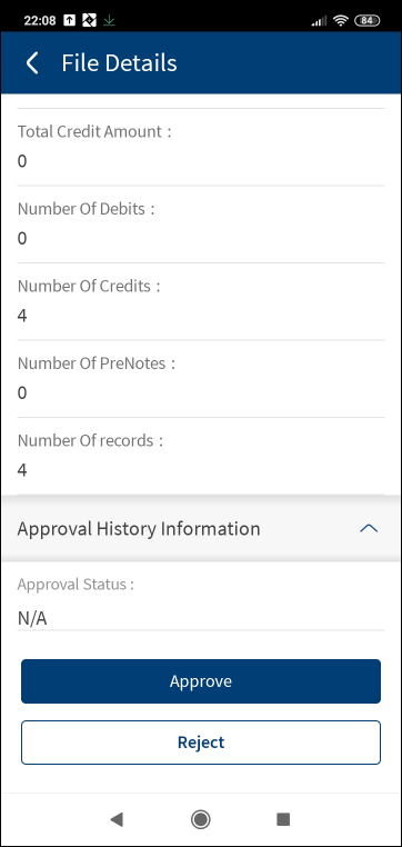 - Applicable only to those users who have the required permissions to approve or reject transactions and the user is one of the approvers for the selected accounts as defined in the approval matrix.