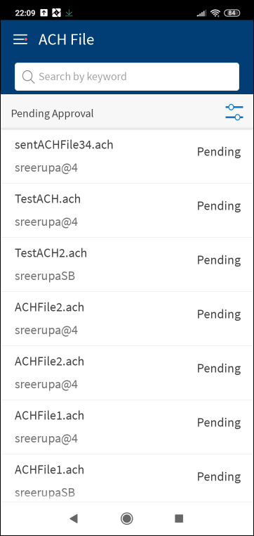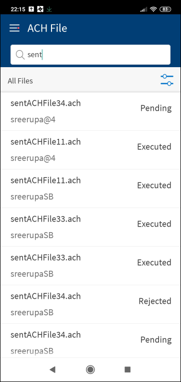Tap any file to view file details and take further appropriate action depending on the status of the file. Search the list of files to find a certain file to action further. To search any file, enter the file name or the request type.