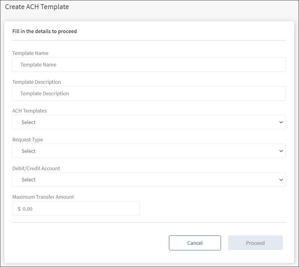 To create an ACH template, follow these steps. All the fields are mandatory: