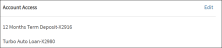 Displays the list of accounts to which the user has been provided access. Make the changes by selecting or clearing the account check boxes. Click Save & Update. The changes are updated. The user will be able to view or operate only the selected accounts when the user signs in to the application.