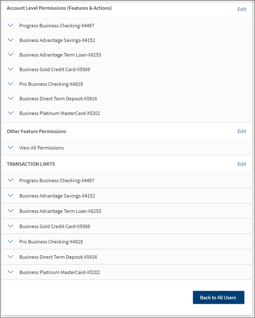 The feature is available to only those users who are given explicit permission to manage business users. The business users can access the permitted business accounts in the banking application and perform the activities based on the permissions (access to features and actions) given to the business user. See Permissions for more information.