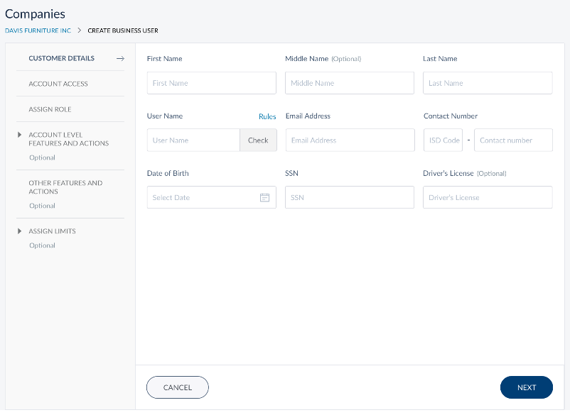• Date of Birth. Enter the date of birth of the business user. It is mandatory.