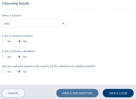 • Marital Status. Select the marital status as divorced, married, single, or widowed from the list. This field is applicable only for retail customers.