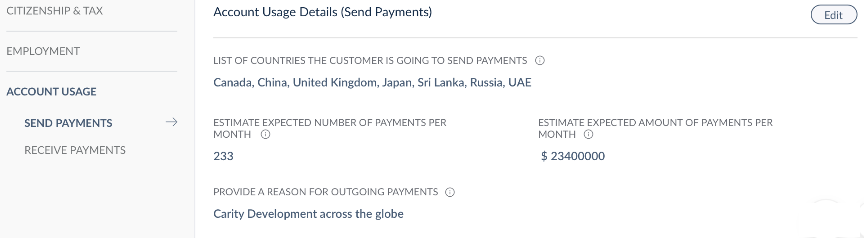 • E-agreement Status. Required or not required, and if required, whether signed or not. Applicable only for business users.