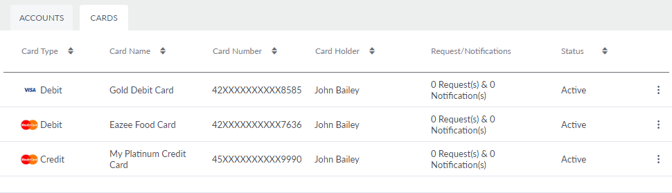 • Products: The information in Accounts and Cards sub-tabs is divided into Retail and Business banking tabs. These tabs show their respective products. You can carry out all the activities that you can do on the unlinked profiles.
