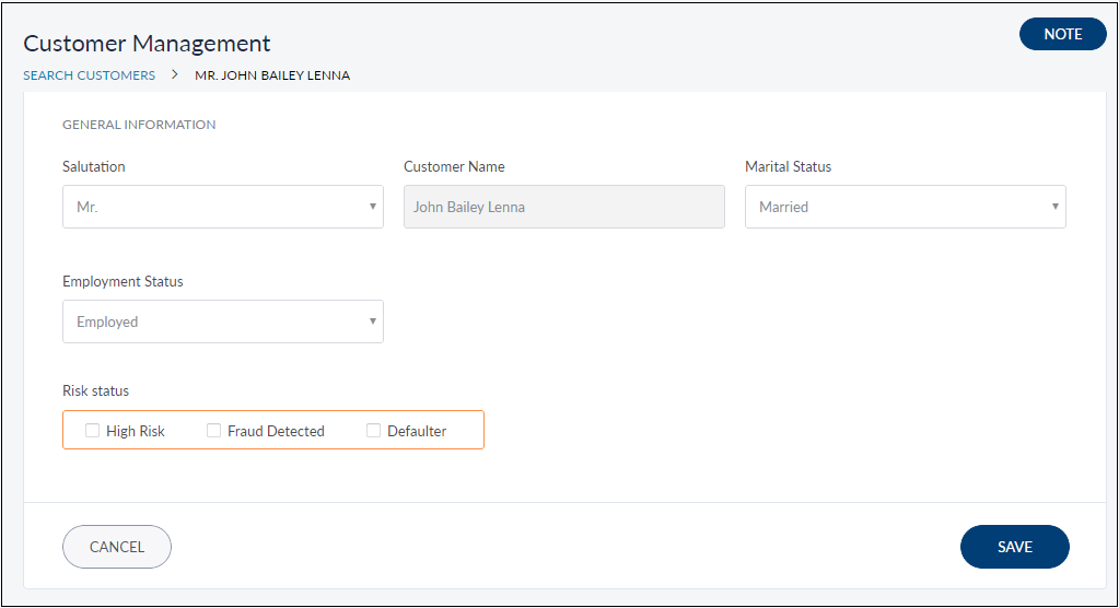 • Note. Click Note if you want to make a note about any changes made in the customer's profile for any future reference.