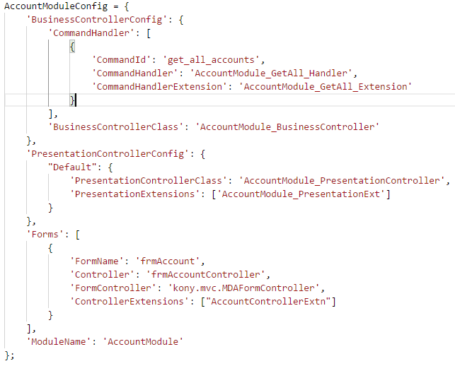 - The command handler extension class is mentioned in the module config as shown above. In the above example, the