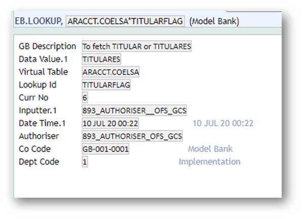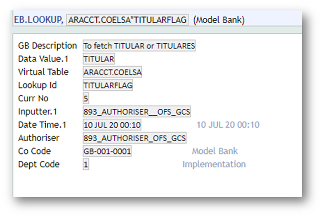 - We are giving an provision to fetch details either from titualr or titulares using an EB.LOOKUP record. Provide either “TITULAR” or “TITULARES” in the data value field. Please provide any one, don’t give both.