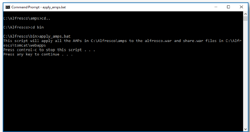Before you start to install the AMP file you must make sure that Alfresco Database is shutdown.