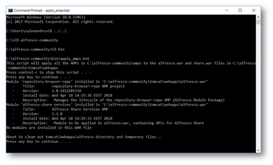 - Enter command: CD alfresco-community