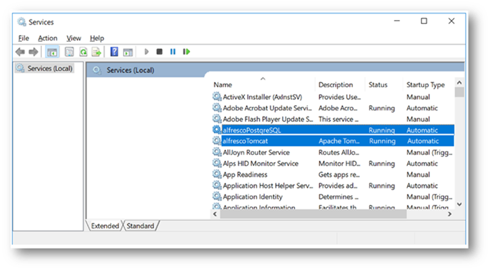Before you start to install the AMP file you must make sure that Alfresco database is shutdown. The following steps show you how to check that the status of Alfresco Tomcat application server.