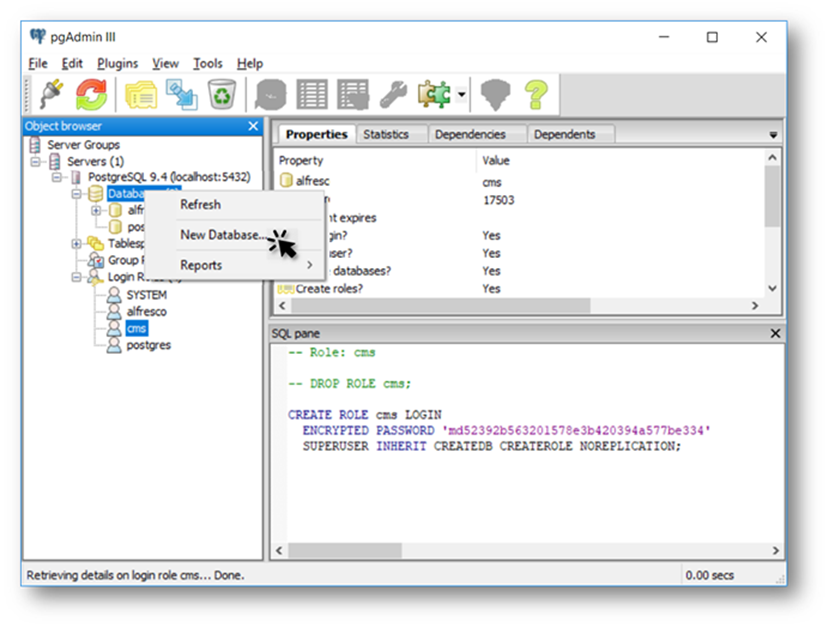 Add a PostgreSQL Database and User for Alfresco