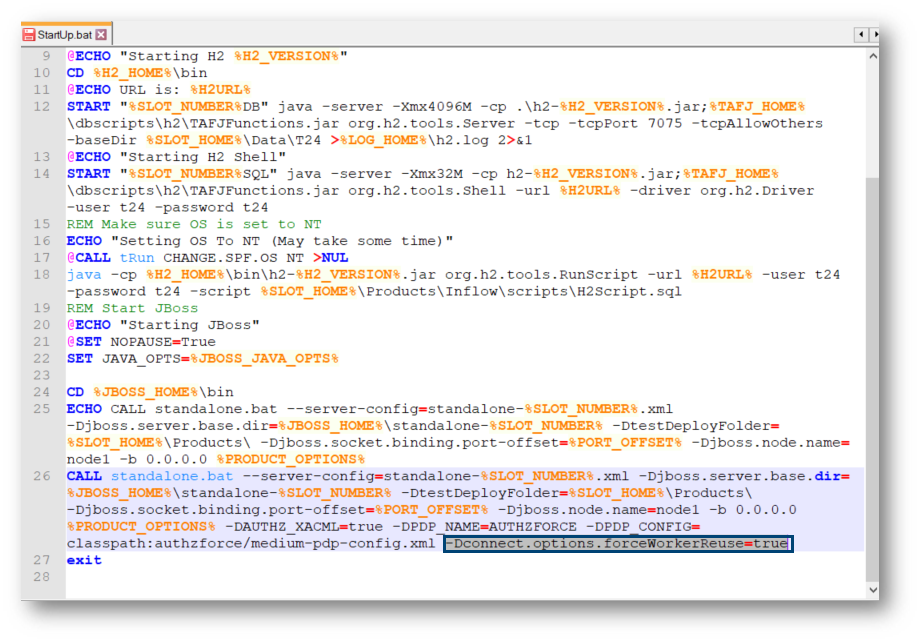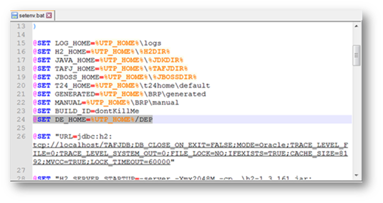 - Open T24Service and add the DEP folder home location: set DE_HOME=%SLOT_HOME%\Products\DEP