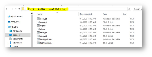 - Go to the bin directory of jasypt and type ‘cmd’ then give enter.
