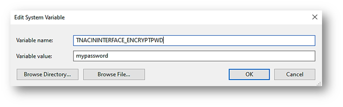 - TNACININTERFACE_ENCRYPTPWD=<The password of the encrypted message>.