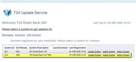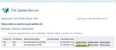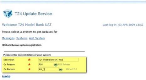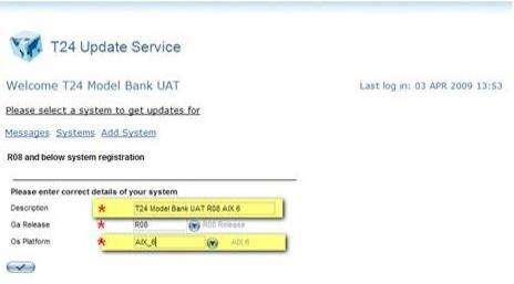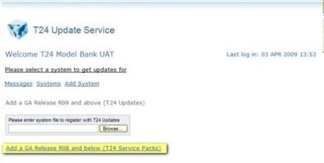 - Click Add a GA Release R08 and below (Temenos Transact Service Packs) to register a pre-R09 system.