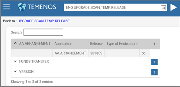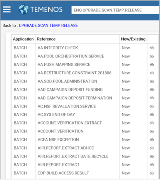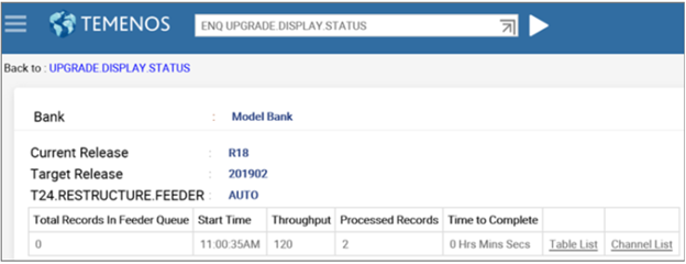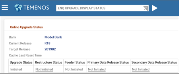 This section discusses about the enquiries that helps you to scan the Temenos Transact release pack (TEMP.RELEASE), so that you can identify the critical and non-critical data items of the new software release. You can also use these enquiries to monitor the online upgrade status.
