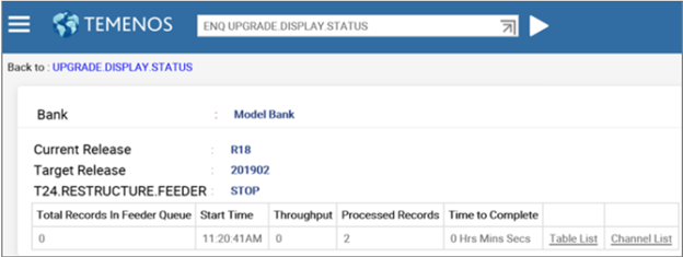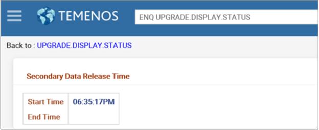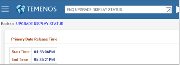 - Primary Data Release Status shows you the start and end time of the T24.UPGRADE.PRIMARY service.
