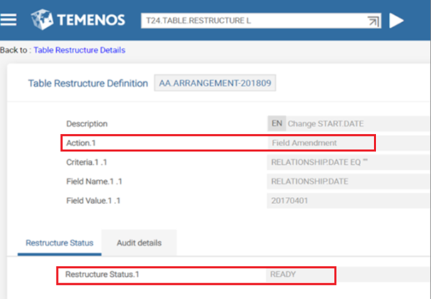 - After this restructure mechanism, Restructure Status gets updated as shown below.