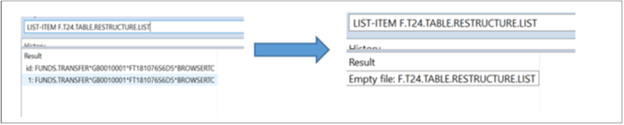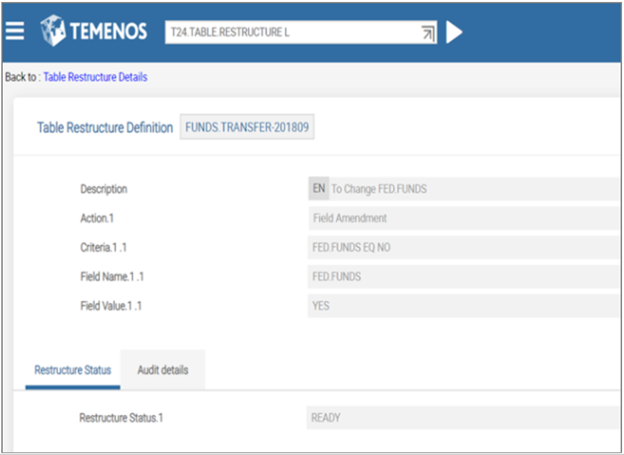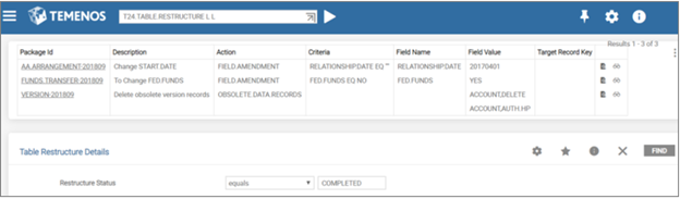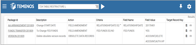 Example of updated T24.TABLE.RESTRUCTURE and Table Restructure Definitions.