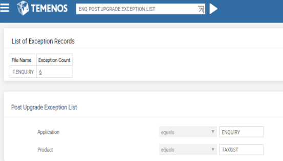 You can use the POST.UPGRADE.EXCEPTION.LIST enquiry to monitor the list of data items released in exception during generic upgrade, updates, product installation and data items released from an online upgrade. This section provides you the details of the corresponding enquiries and reports.