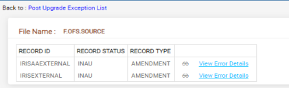 On clicking the exception count, it displays more details about the corresponding file and status of its data items (IHLD, INAU, new record or amendment record released).